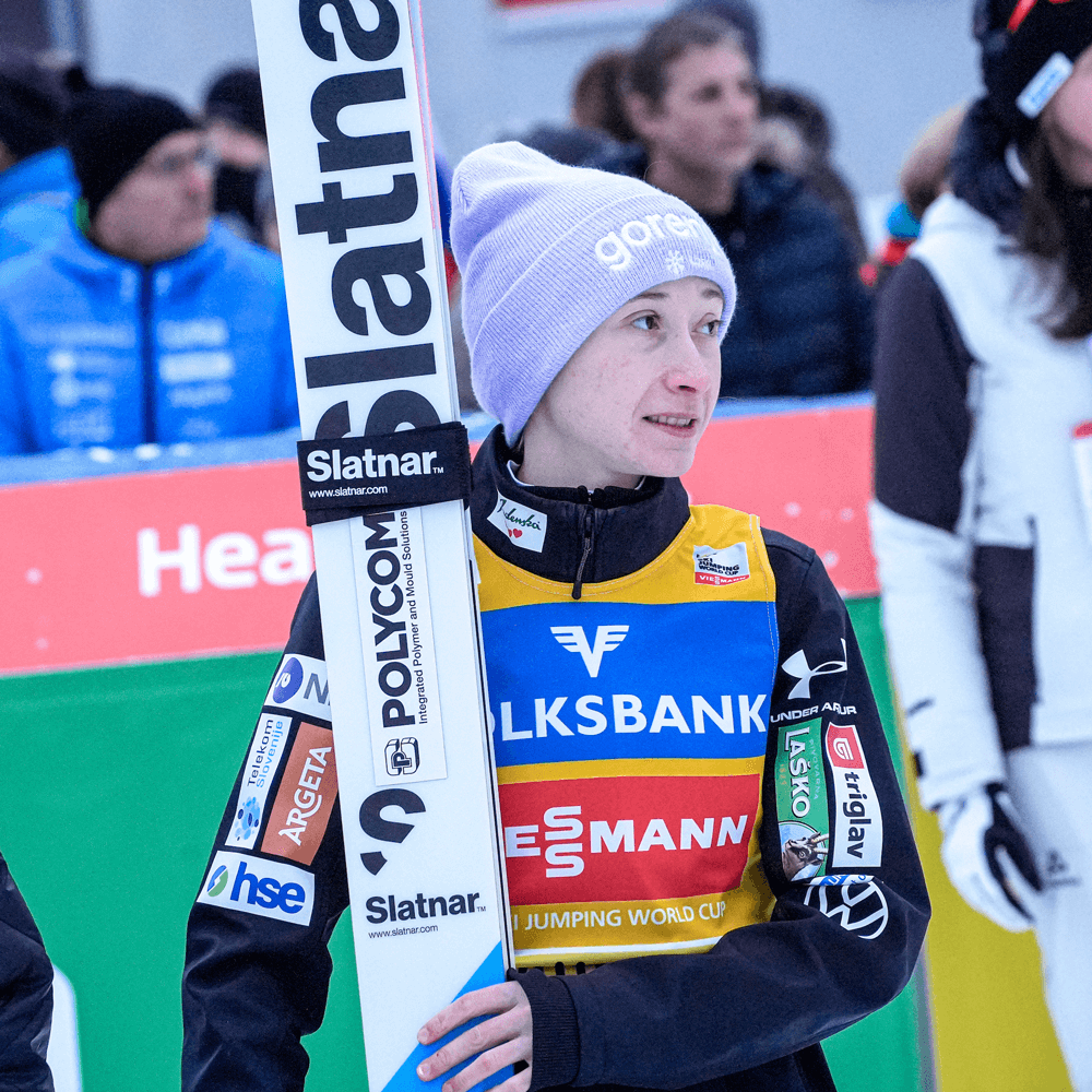 Zimska ženska uradna kapa Under Armour Gorenje 2025 SLOSKI Nordic, kakršno v tej sezoni nosijo naše smučarske skakalke.